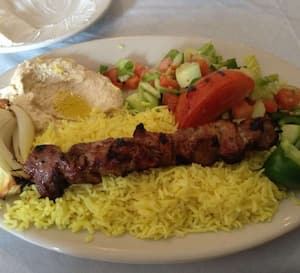 Served with rice soup or mini salad mini hummus and 1 pita bread. 2 skewers of specially seasoned tender filet of beef fire grilled and served with grilled vegetables. Give us a call for reservations or reserve online by clicking the Reservation button from any page.